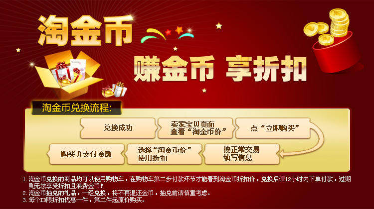 (c)在申请参加淘金币活动宝贝的宝贝详情描述页顶部添加淘金币兑换流程图,并指向淘金币官方兑换地址。