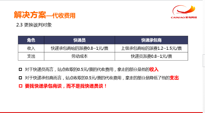 承包商答应了,,一票给我1.2块,,不过叫我自己早晨去郊区货站提货,晚上去派货,,一天2次,,每天能到200件,,算算我挣钱不,,,,我直接就当快递员 了,,,还没扣款和房租,,,菜鸟驿站的思维,,老是落后市场1年,,,,比淘宝天猫差远了,,,记住,不要把驿站当作主业,,就是当个提升客流量的东西,,,